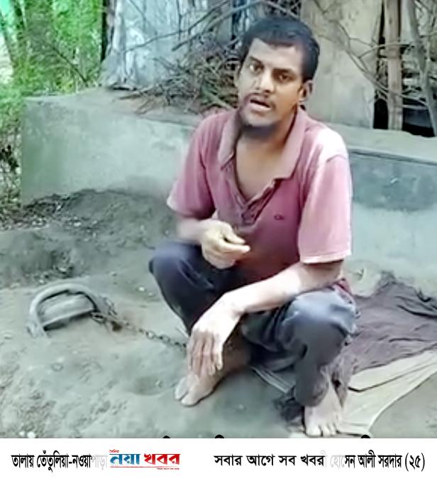 তালায় শুকদেবপুর পিচের রাস্তার ধারে ১৮ বছর ধরে শিকলবন্ধী হোসেন আলী