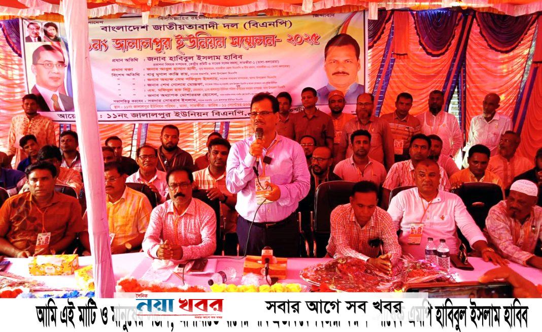 এসময় প্রধান অতিথি হাবিবুল ইসলাম হাবিব বলেন, “জালালপুর ইউনিয়ন বিএনপির দুর্ভেদ্য ঘাঁটি। বিগত স্বৈরশাসকের আমলে আপনারা ভোট দিয়ে মফিদুল হক লিটুকে বারবার চেয়ারম্যান নির্বাচিত করে প্রমাণ করেছেন এই ইউনিয়ন বিএনপির ঘাঁটি। এই মাটির কৃতিসন্তান বিপ্লবকে খুনি হাসিনার বাহিনী গুলি করে হত্যা করেছে। আমি এই মাটির সন্তান, আপনাদের সন্তান। এলাকায় উন্নয়নের জন্য আপনাদের কর্মী হয়ে থাকতে চাই, অতীতে তার প্রমাণ আমি রেখেছি। আগামীতেও উন্নয়ন করতে ধানের শীষ প্রতীককে বিজয়ী করার আহ্বান জানান তিনি।