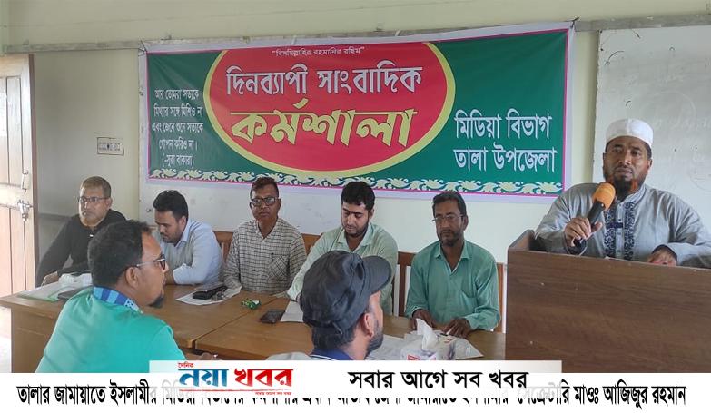 তালায় বাংলাদেশ জামায়াতে ইসলামীর মিডিয়া বিভাগের দিনব্যাপী সাংবাদিক কর্মশালা অনুষ্ঠিত হয়েছে।৩০ সেপ্টেম্বর (মঙ্গলবার) তালা শহীদ মুক্তিযোদ্ধা কলেজের হলরুমে উপজেলা মিডিয়া বিভাগের সভাপতি প্রভাষক ইয়াছিন আলীর সভাপতিত্বে প্রধান অতিথি হিসাবে বক্তব্য রাখেন জেলা মিডিয়া বিভাগের উপদেষ্টা ও জামায়াত ইসলামি বাংলাদেশ সাতক্ষীরা জেলা সেক্রেটারি মাওঃ আজিজুর রহমান।