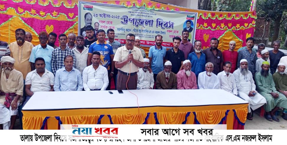 বৃহস্পতিবার(২৩ শে অক্টোবার) বিকাল চারটায় তালা উপজেলা জাতীয় পার্টির আয়োজনে সভাপতির নিজ বাসভবন চত্বরে উপজেলা দিবসের আলোচনা সভায় উপজেলা জাতীয় পার্টির সভাপতি ও জেলা জাপার সি.সহ-সভাপতি সাংবাদিক এস.এম নজরুল ইসলাম এর সভাপতিত্বে অনুষ্ঠিত হয়।