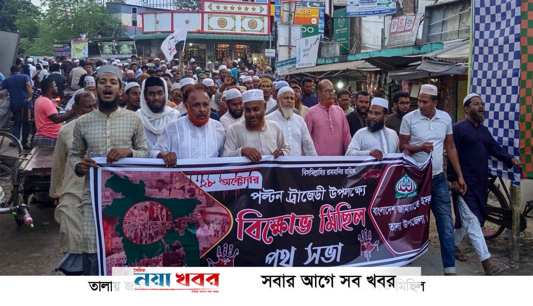 তালায় উপজেলা জামায়াতে ইসলামীর উদ্যোগে পল্টন ট্র্যাজেডির শহীদদের স্মরণে বিক্ষোভ মিছিল ও পথসভা অনুষ্ঠিত হয়েছে।