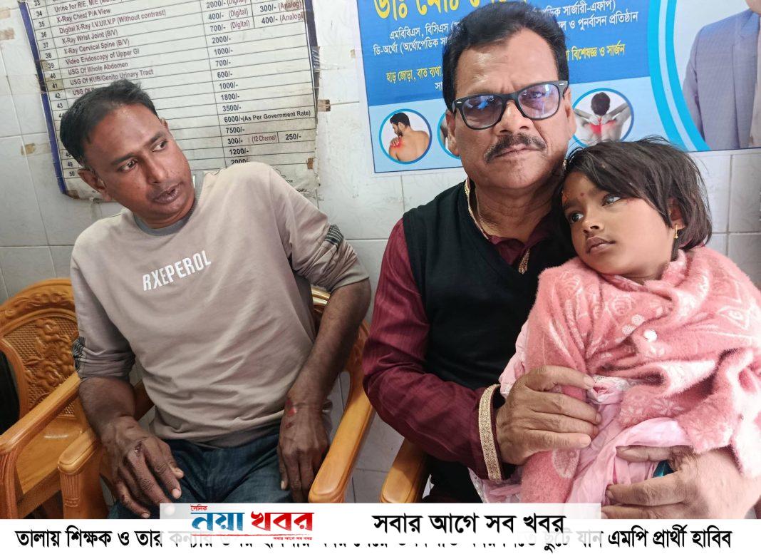 সাতক্ষীরার তালা উপজেলায় কলেজ শিক্ষক হিরন্ময় মন্ডল ও তার শিশুকন্যা নাতাশা মন্ডলের ওপর হামলা ও ছিনতাইয়ের ঘটনায় এলাকায় তীব্র চাঞ্চল্য সৃষ্টি হয়েছে। ঘটনার পরপরই অভিযুক্ত যুবককে আটক করে পুলিশের কাছে সোপর্দ করেছে ইউনিয়ন বিএনপি ও অঙ্গ সংগঠনের নেতাকর্মীরা।