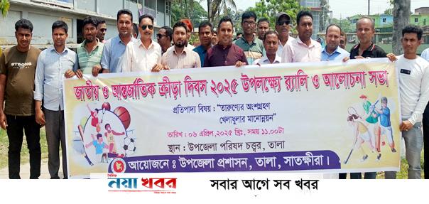 তালায় “তারুণ্যের অংশগ্রহণ, খেলাধুলার মানোন্নয়ন” এই প্রতিপাদ্যকে সামনে রেখে জাতীয় ও আন্তর্জাতিক ক্রীড়া দিবস উপলক্ষে র্যালী ও আলোচনা সভা অনুষ্ঠিত হয়েছে।