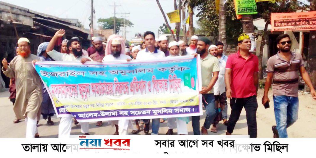 ফিলিস্তিনের গাজায় ইসরাইলি নৃশংস গনহত্যা ও বর্বরোচিত হামলার প্রতিবাদে তালায় উপজেলা জামায়াতে ইসলামীর আয়োজনে বিক্ষোভ মিছিল ও প্রতিবাদ সমাবেশে অনুষ্ঠিত হয়েছে।