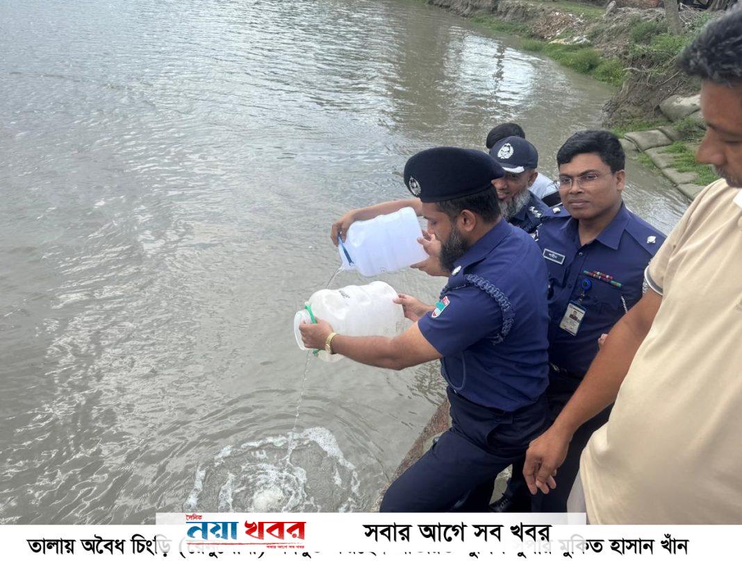 রবিবার দুপুরে তালায় থানা পুলিশের বিশেষ অভিযানে চারটি প্লাষ্টিকের কৌটায় ১৭,৫০০ পিছ অবৈধ চিংড়ি(রেনুপোনা) আটক করে অবমুক্ত করা হয়েছে।