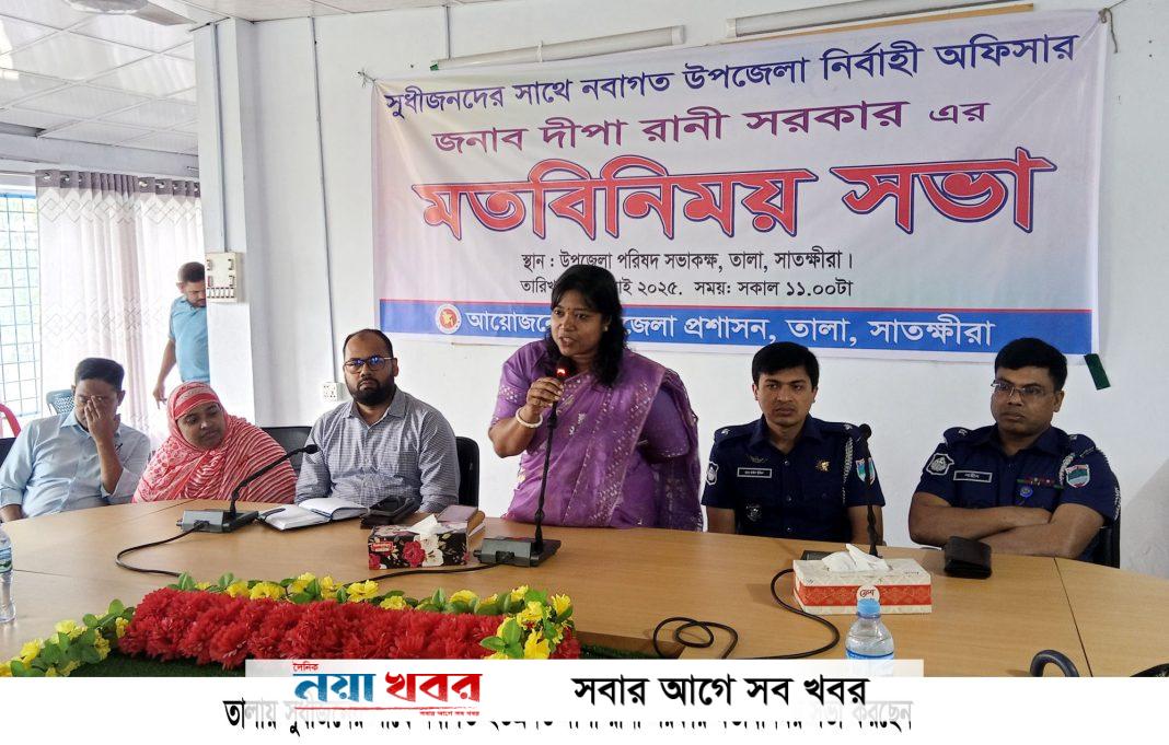 তালায় সুধীজনদের সাথে নবাগত উপজেলা নির্বাহী কর্মকর্তা (ইউএনও) দীপা রানী সরকারের মতবিনিময় সভা অনুষ্ঠিত হয়েছে।