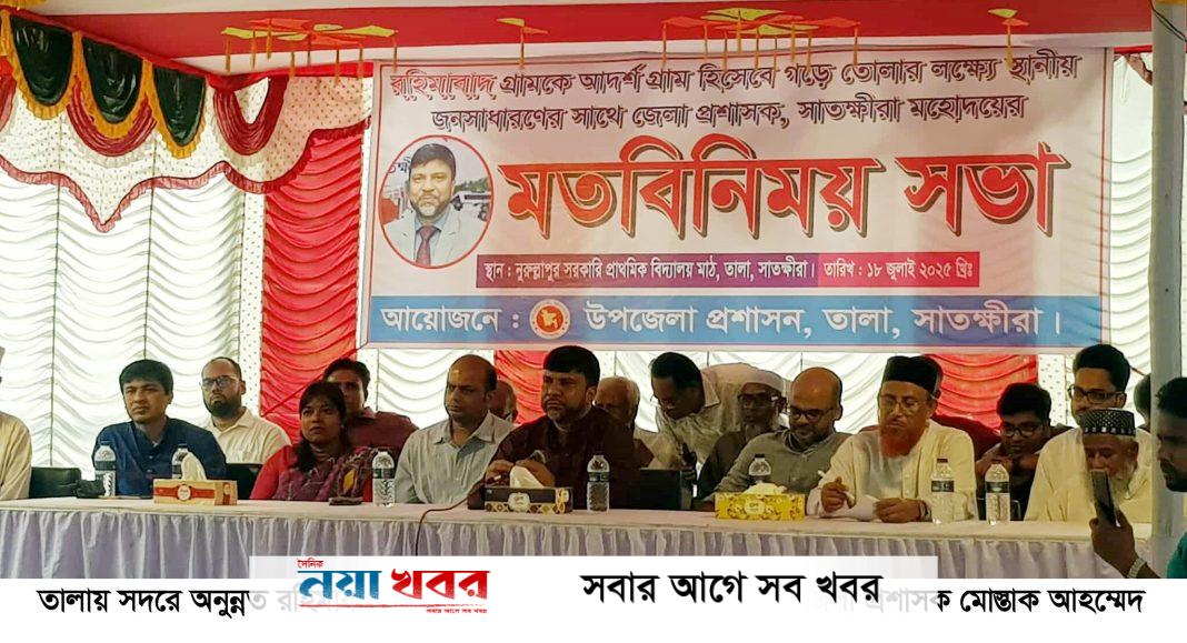 শুক্রবার (১৮ জুলাই) বিকালে নুরুল্লাপুর সরকারী প্রাথমিক বিদ্যালয় চত্বরে তালা উপজেলা প্রশাসনের আয়োজনে উপজেলা নির্বাহী কর্মকর্তা দীপা রাণী সরকারের সভাপতিত্বে মতবিনিময় সভায় প্রধান অতিথি হিসেবে বক্তব্য রাখেন, সাতক্ষীরা জেলা প্রশাসক মোস্তাক আহম্মেদ।